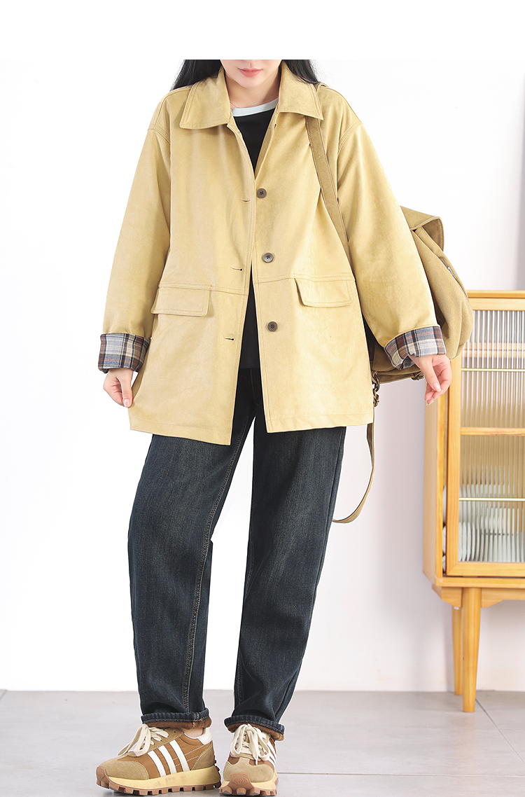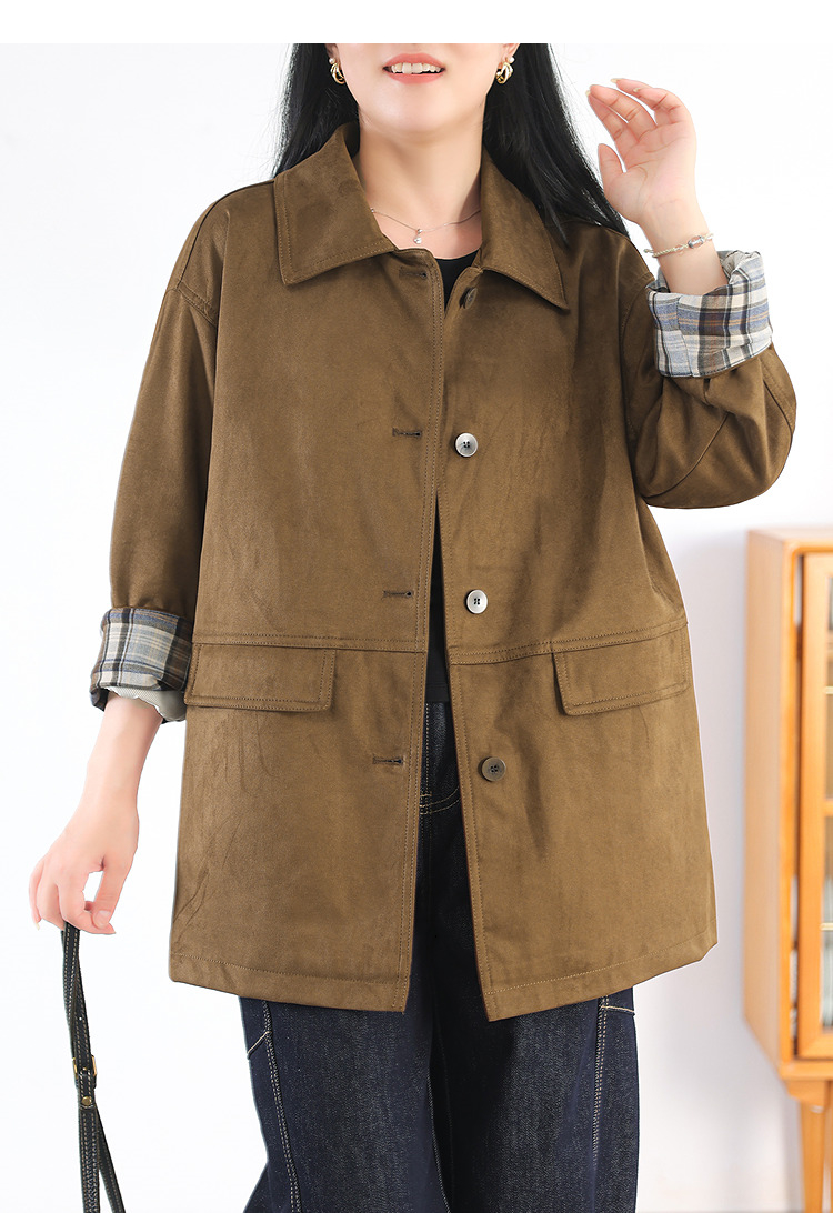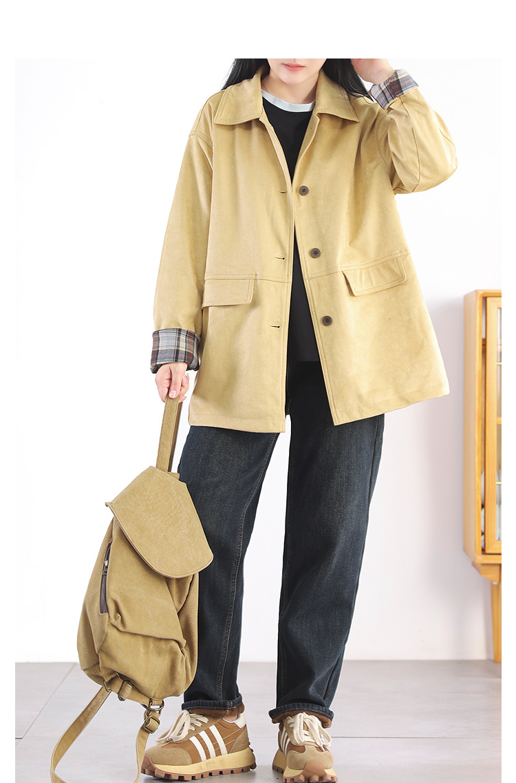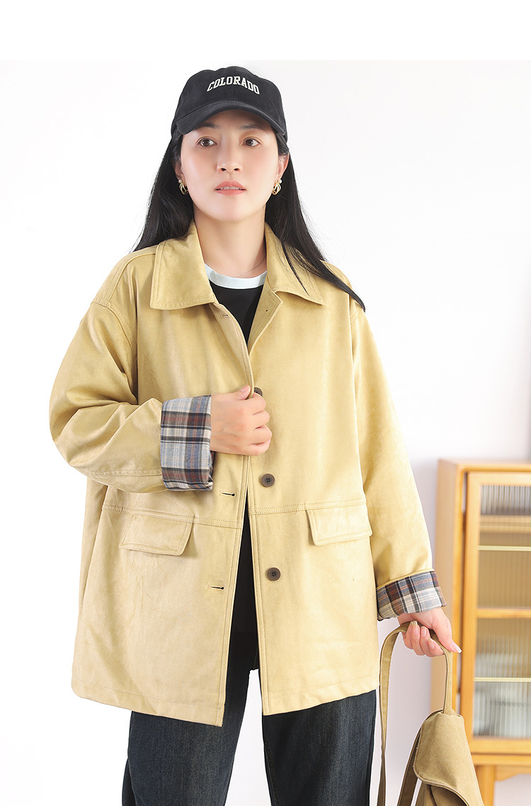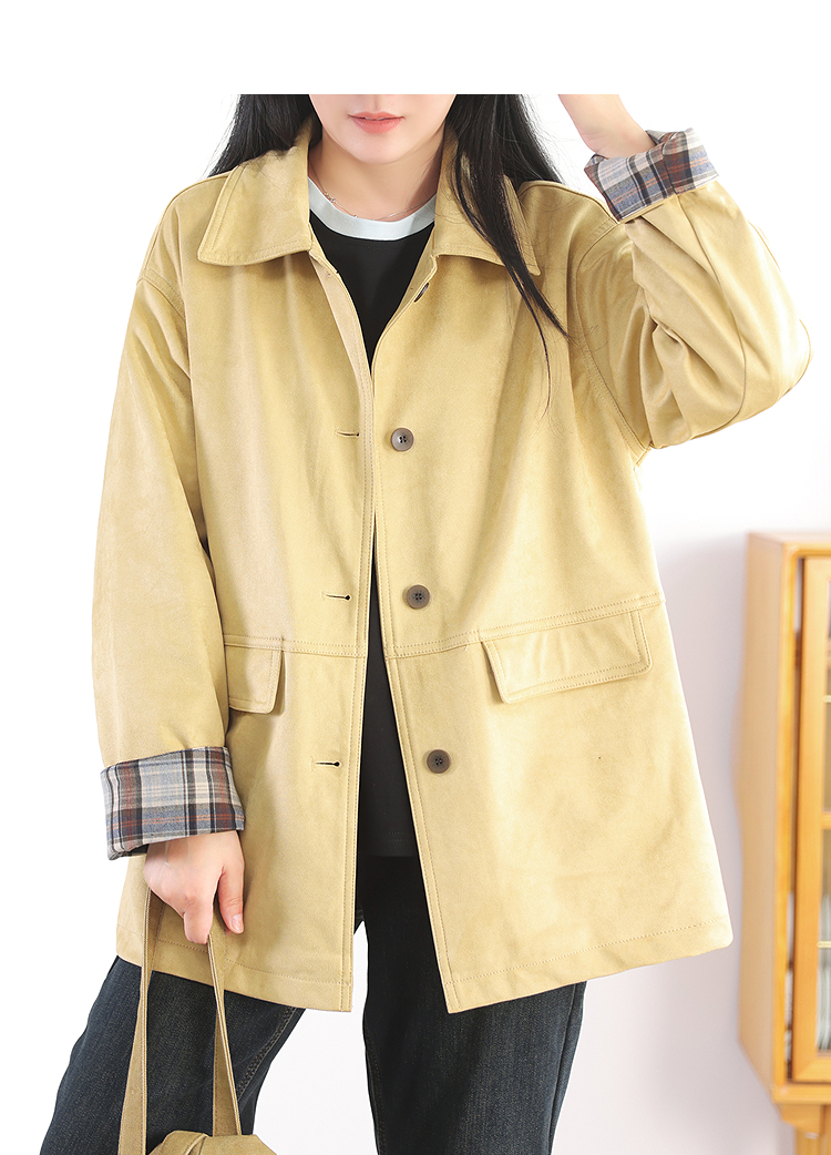 Autumn Windbreaker Coat Plaid Splicing Style Retro High-Grade Workwear Overcoat