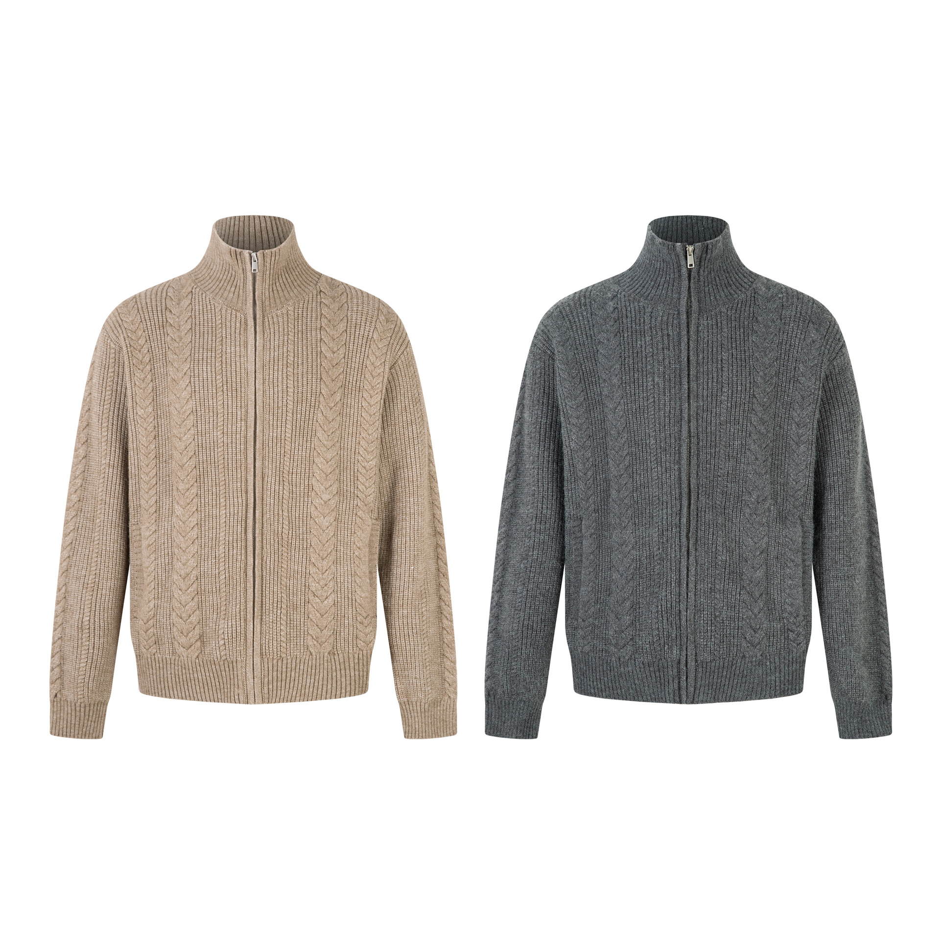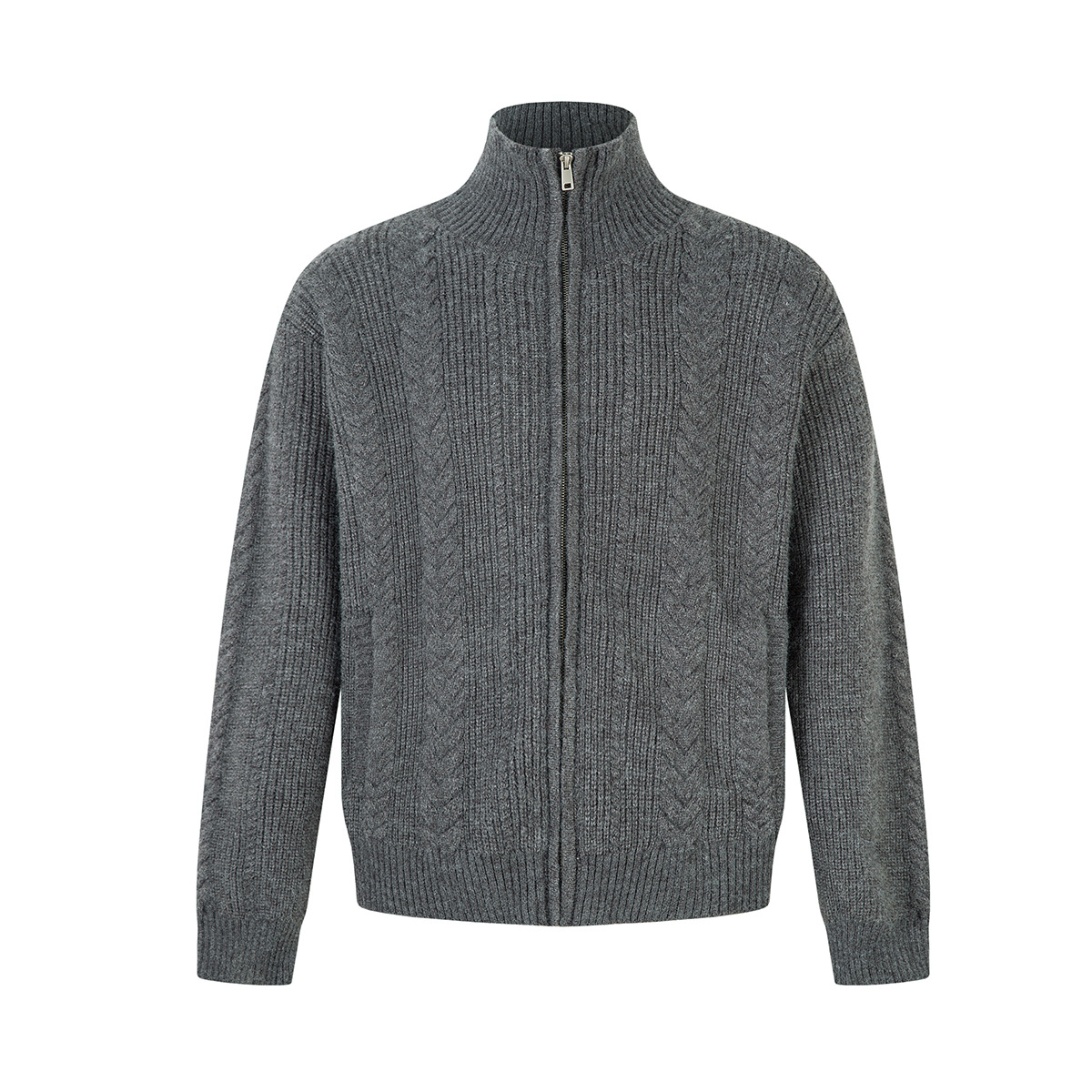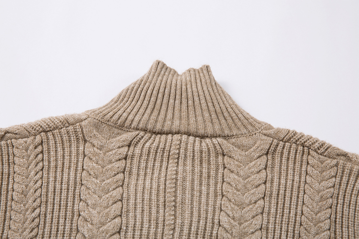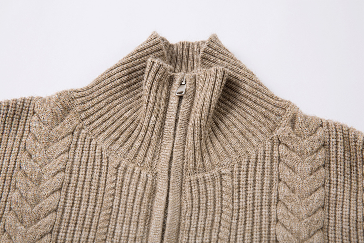 High neck sweater zipper coat Fried Dough Twists knitting sweater