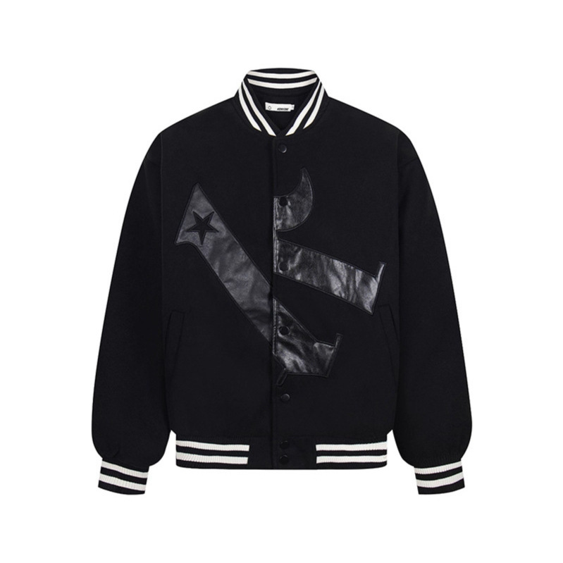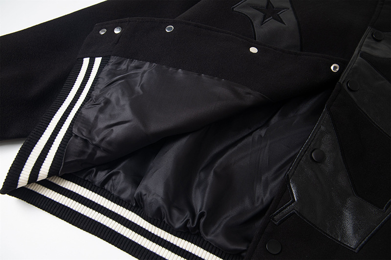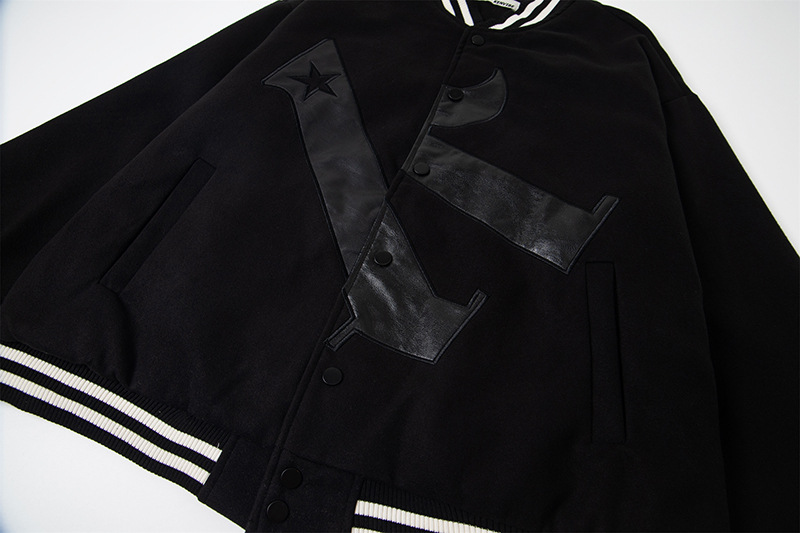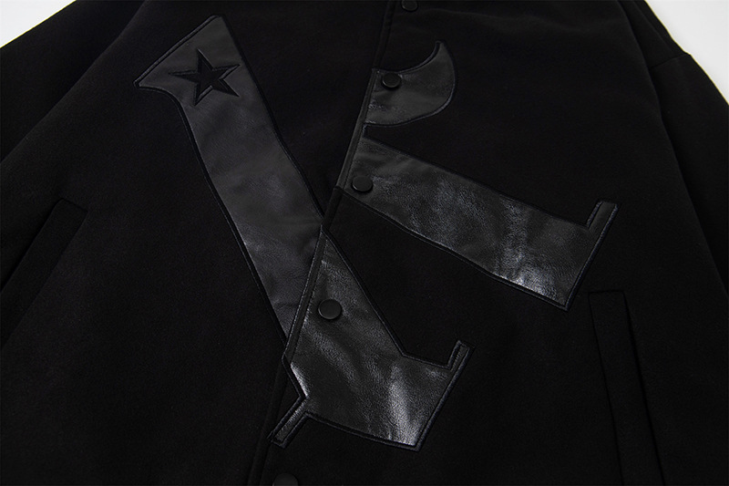Leather Embroidered Splicing Jacket Coat