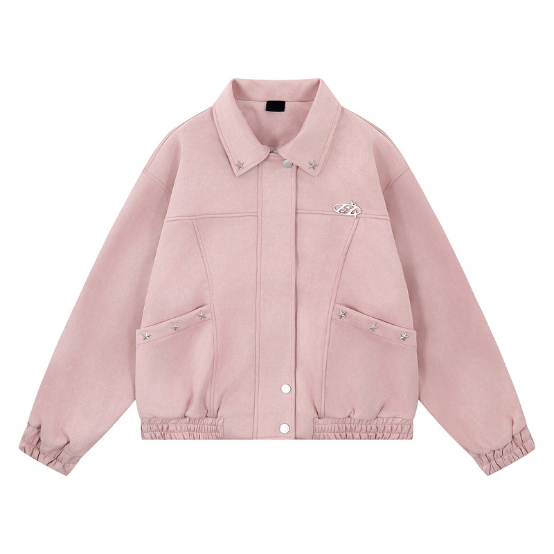Pink Lapel Jacket for Men and Women Loose Casual Couple Suede Jacket